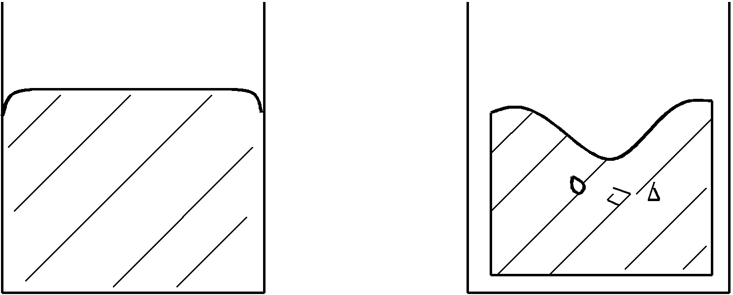 2. Hohlräume, die durch Verunreinigungen entstehenUm Verunreinigungen der Metallschmelze fernzuhalten genügt es meist zügig einzugießen damit der Gußkegel immer bedeckt bleibt. So schwimmen die leichteren Verunreinigungen meist oben auf dem Gußkegel. Beim Guß mit viel Verunreinigungen, ist es günstig den Eingußkegel länglich auszuformen, damit die leichteren Stoffe mehr Zeit zum aufschwimmen haben.