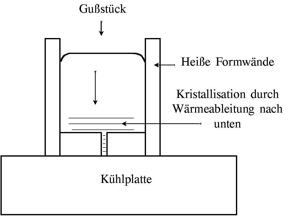 Da die Temperatur entscheidend ist und der Eingießvorgang immer eine gewisse Zeit in Anspruch nimmt, in der schon Abkühlung erfolgt, ergeben sich daraus weite Steuerungsmöglichkeiten.