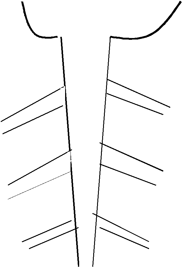 Ebenso wichtig wie der Aufbau ist das Ansetzen der Angußstifte. Generell gilt daß die Stifte an der dicksten Stelle angesetzt werden sollen, damit sie die Funktion des Speisers mit übernehmen. Falls sie jedoch glatt und ohne Verengung angesetzt werden, entsteht eine massive Stelle die zu besonders starker Lunkerbildung neigt.