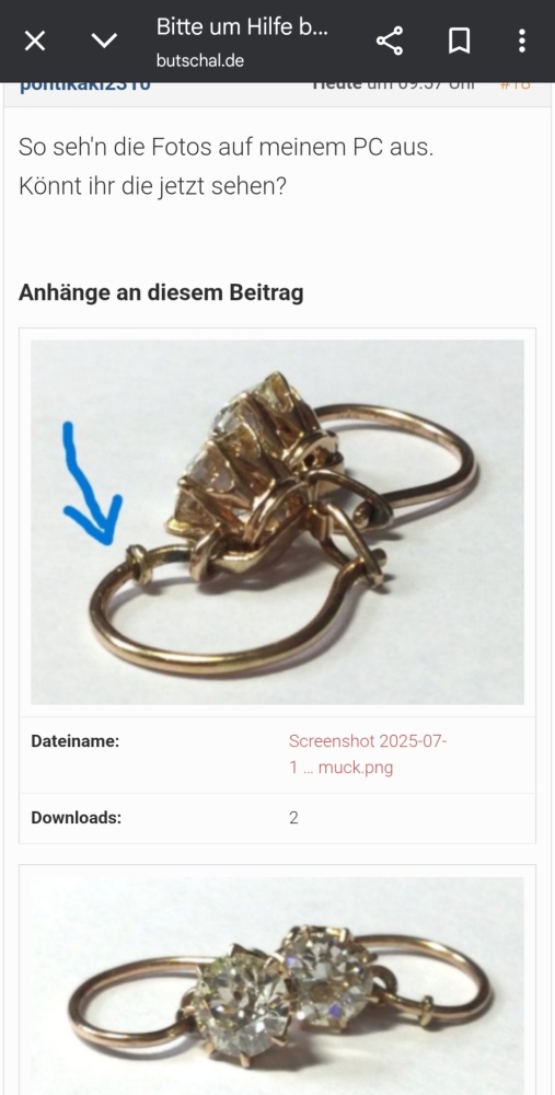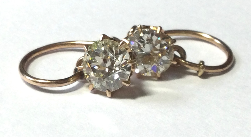 1,8g 585 Rotgold – nicht punziert (aber geprüft ) – je 0,75 ct. Altschliff