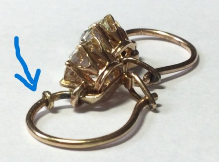 Die Ösen vermutl. später in Gelbgold als Sicherung angebracht.
