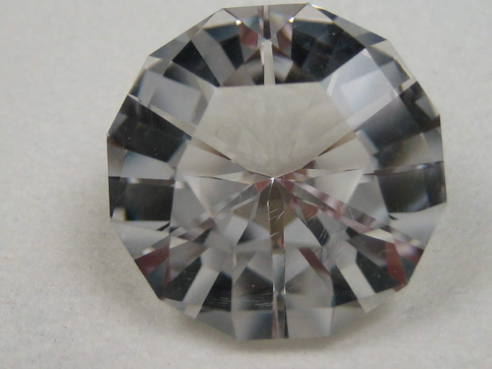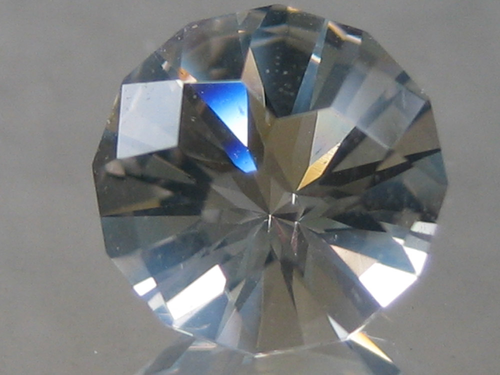 Zur Orientierung: Bergkristall. Aufnahmen mit einer Pocket-Digitalkamera, nicht bearbeitet. Übrigens hat der Stein nur 60 Facetten einschließlich Rundistfacetten. Indexscheibe 60.