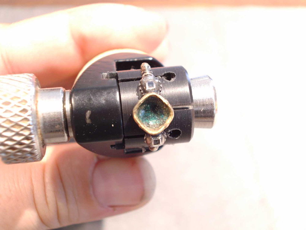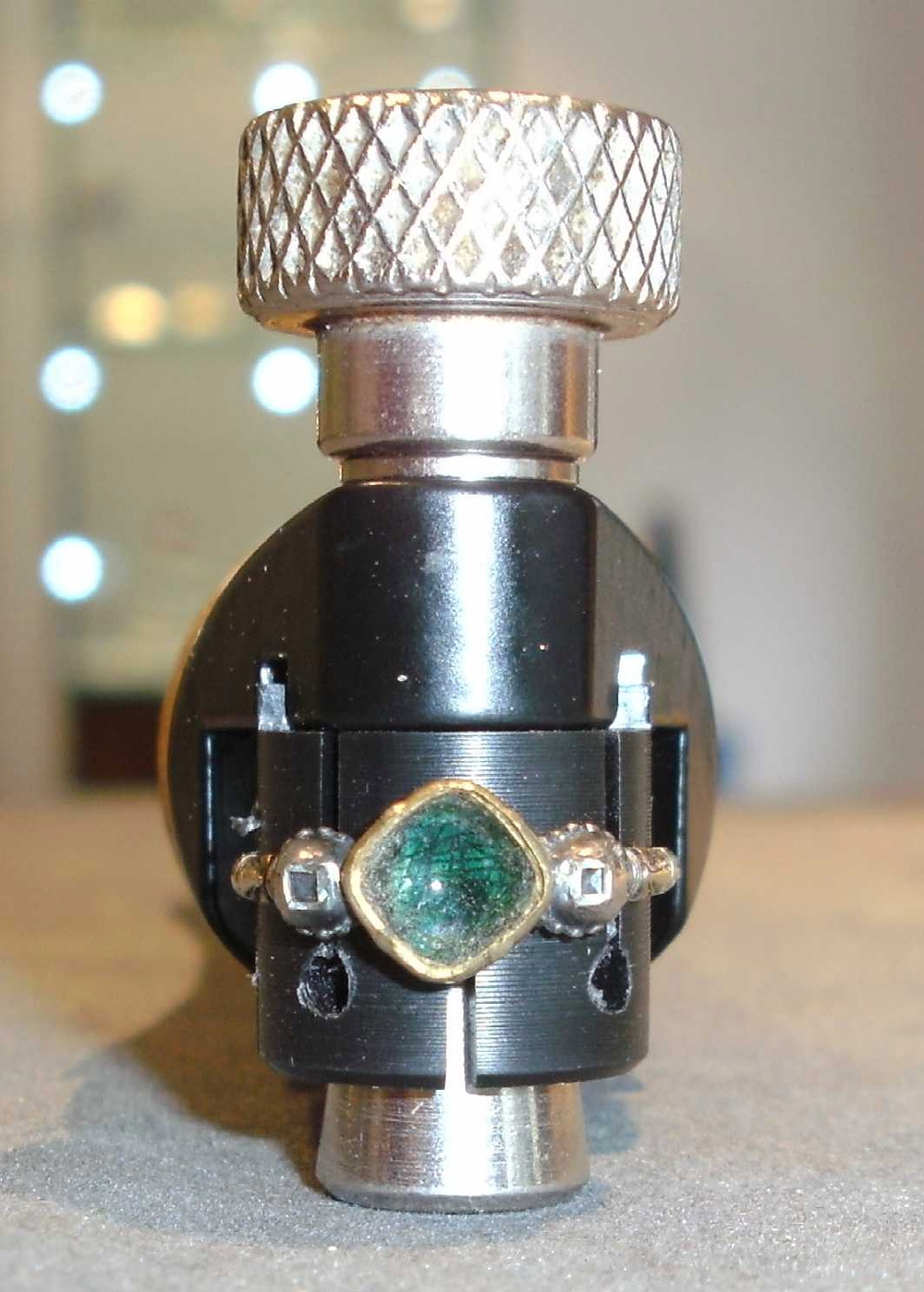 Ok, Feingoldtrauring von der Uroma von 1906 verkleinern auf Abiturientinnenfinger von 2012, das war die leichteste Übung. Interessanter war es dann, den Smaragd auszufassen, ohne ihn zu schrotten. Ham wa auch hingekriegt. Und gleich große Augen gemacht, denn da kam die Farbschummelei von vor mehr als 100 Jahren zutage. Hat doch der Kollege einfach die Fassung hinter dem Smaragd grün ausemailliert, um die blaßgrüne Originalfarbe von dem Smaragd auf ein geiles Kolumbianisch-grün aufzupeppen. Und weil's so schön war, war offenbar auch die Rückseite der Fassung mal emailliert gewesen, davon ist aber nicht mehr als 5 Pünktchen, die jetzt wie Dreckflecken aussehen, geblieben. Nette Idee, aber wieder ein graues Haar mehr bei mir.