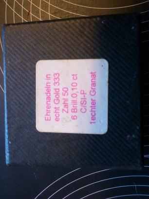 Es handelt sich um eine kleine Brosche,Gewicht 3 Gramm, Durchmesser 1,7 cm. Die mir bekannten Werte sind auf dem zweiten Foto zu sehen.