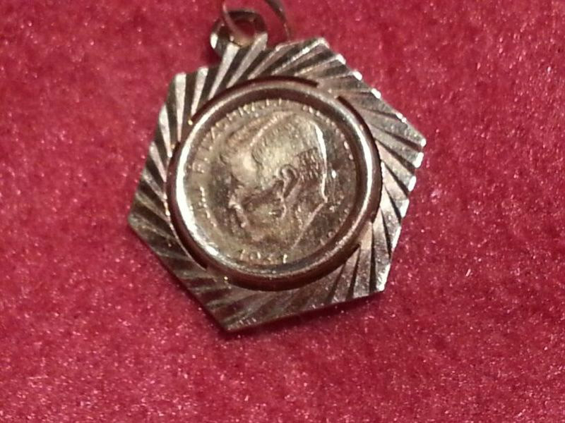 Hallo,habe diese Münze? oder Anhäger/Medallion vererbt bekommen würde gern wissen,ob es was Wert ist u wenn ja,wieviel? Das mittlere Teil ist extra,u eingefasst,alles besteht aus 585 Gold steht auch so drauf,