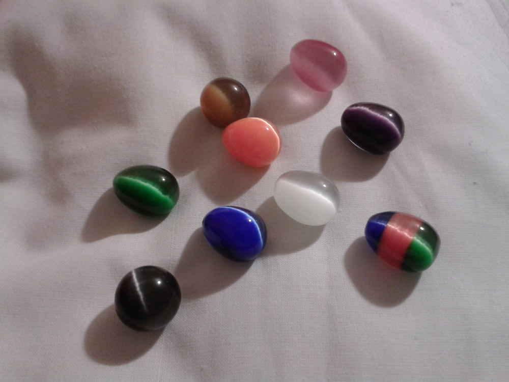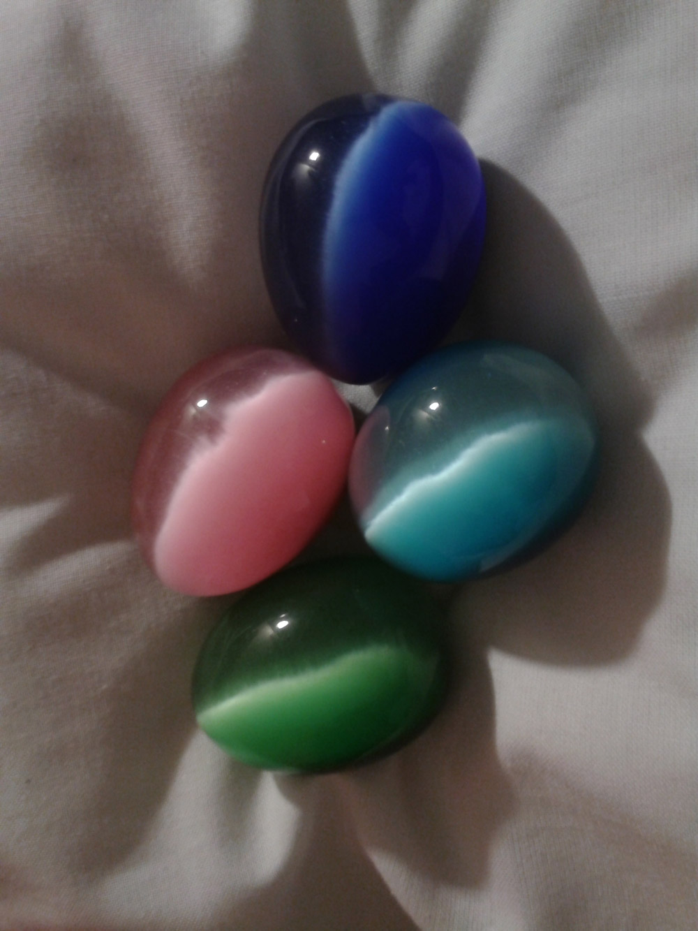 ) synthetischen Katzenaugen gibt es da mittlerweile. 2 solcher Katzenaugen habe ich aus solchen Schmuckstücken bereits befreit, die warten bei mir darauf, dass sie anders gefasst werden. Bei oben besagten Laden gab es damals auch eine figürliche Darstellung: Einen schön geschnittenen und polierten Delphin aus türkisfarbenen synth. Katzenauge grrr. habe ich damals leider nicht gekauft, heute hätte ich den gerne.