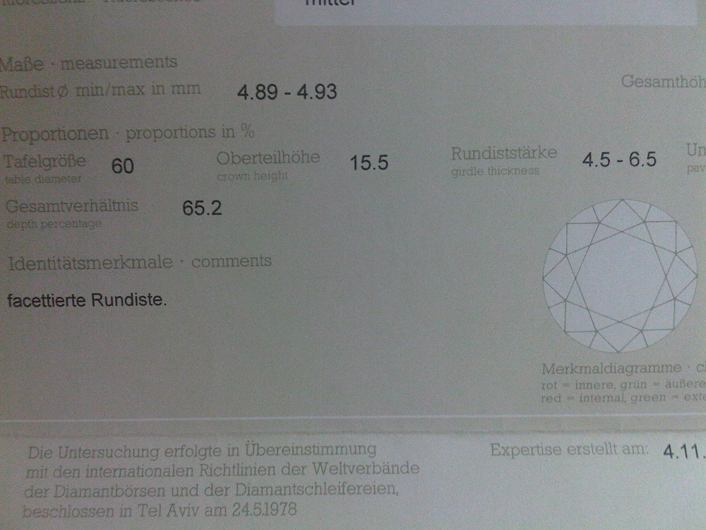 Ich finde ihn selber wunderschön, hatte mich damals - typisch Mann - auch ein wenig in Steinqualität etc. pp. eingelesen und ihn dann nach längerer Suche und Auswahl beim örtlichen Juwelier erworben. Statt 2.200 bezahlte ich 1.850 €.