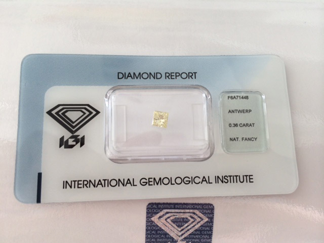 ist richtig Zitronengelb und hat 0,36 ct.