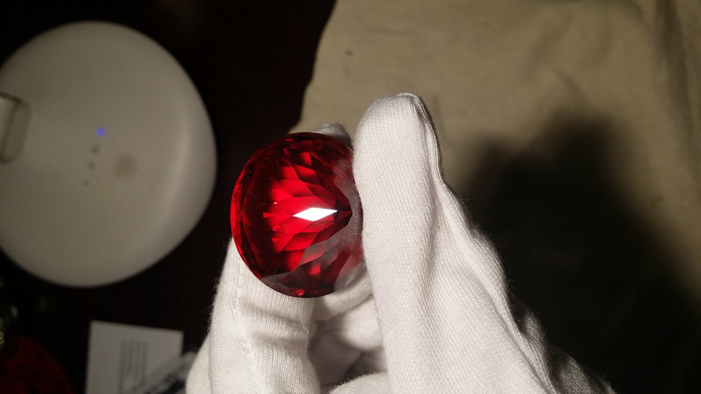 Durch den Yttriumgehalt sind diese Steine schwerer (Dichte) und haben mehr Brillanz (RI) als normales Glas., ...