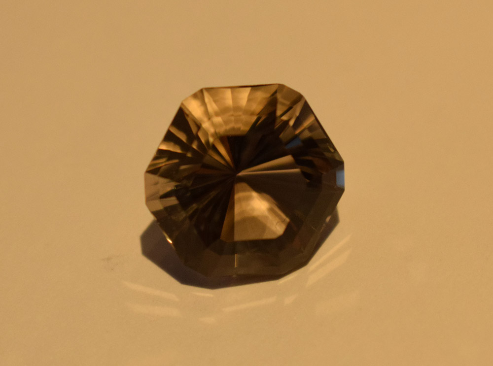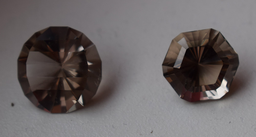 Ich habe kürzlich einen recht dunklen Citrin geschliffen, der aber meiner Meinung nach denselben Farbton wie ein (heller) Rauchquarz hat.