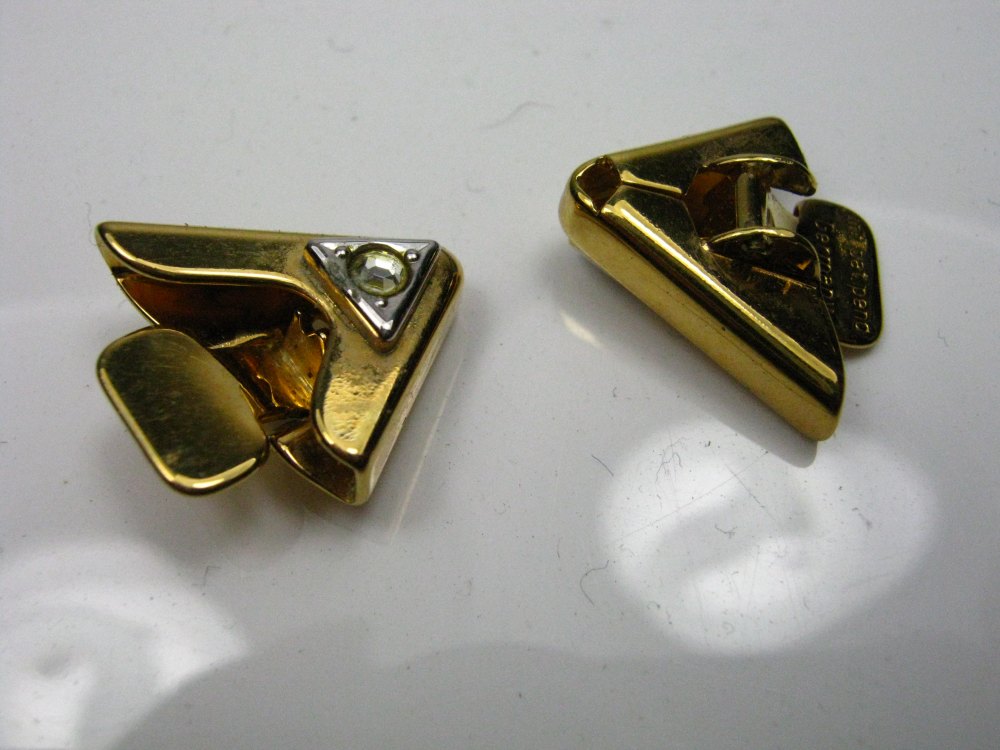 Ich hatte vor Kurzem das erste Mal ein Paar Modeschmuck-Kragenecken mit im Konvolut. Ich möchte sie Euch gerne zeigen, da sie nicht mit einem Pin, sondern mit einer Art Klammer geschlossen werden. Das Verfahren scheint auch patentiert zu sein.