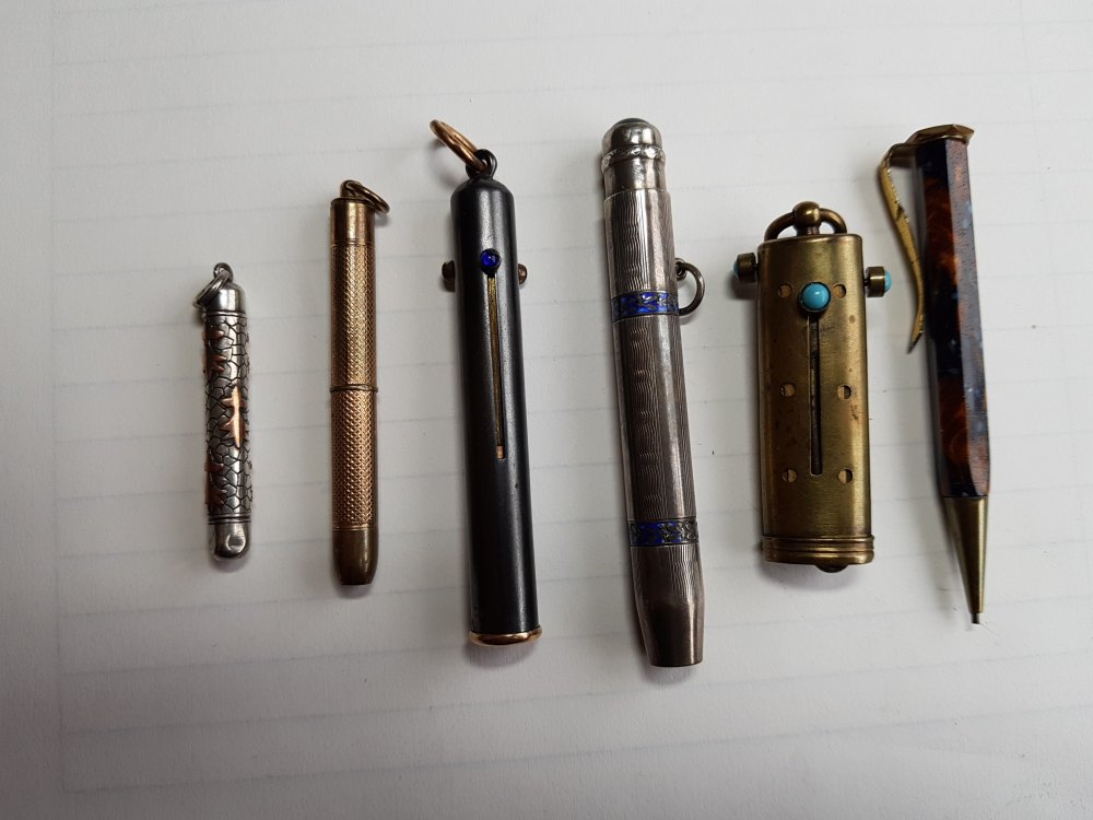 Zum Tag der Arbeit zeige ich keinen Schmuck, sondern eine silberne Bleistifthülle, die die Hausfrau früher mit anderen Gerätschaften an einer Kette trug. Der Stift (in meinem Fall nur noch ein Stummel) wird mit einem Schieber herausgedrückt. Da Teil ist mit einem Konvolut von Broschen zu mir gekommen und wurde heute geputzt.