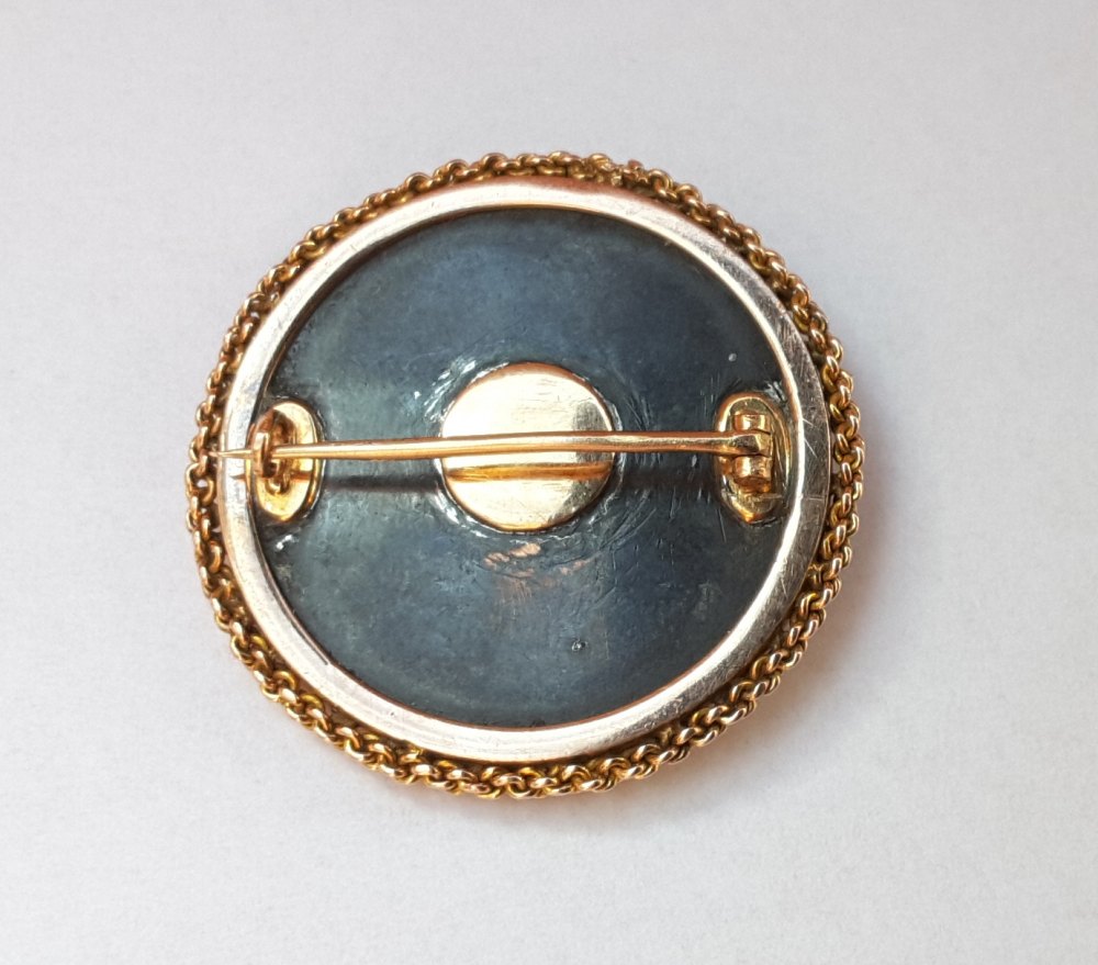 Die Montur und die Nadel sind westlich, ich würde die Brosche aber in die Meiji-Zeit datieren, dh. 1868-1912. Als der Schwertadel/Samurai abgeschafft wurde, mussten die Samuarai sich einen neuen Broterwerb suchen und viele ehemalige Samurai haben ihre Fähigkeiten in den Metallarbeiten/im Kunsthandwerk verfeinert. Mit der Öffnung Japans kamen auch plötzlich japanische Kunsthandwerksobjekte in größeren Mengen nach Europa und Nordamerika und besonders in Europa brach eine regelrechte Japanmanie aus, besonders in Paris/Frankreich (Japonismus).