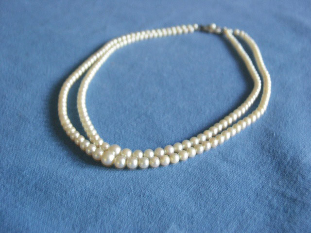 Perlenkette geerbt. Sie besteht aus 192 Perlen, welche jeweils vom Verschluss (Weißgold) bis zur Mitte größer werden.