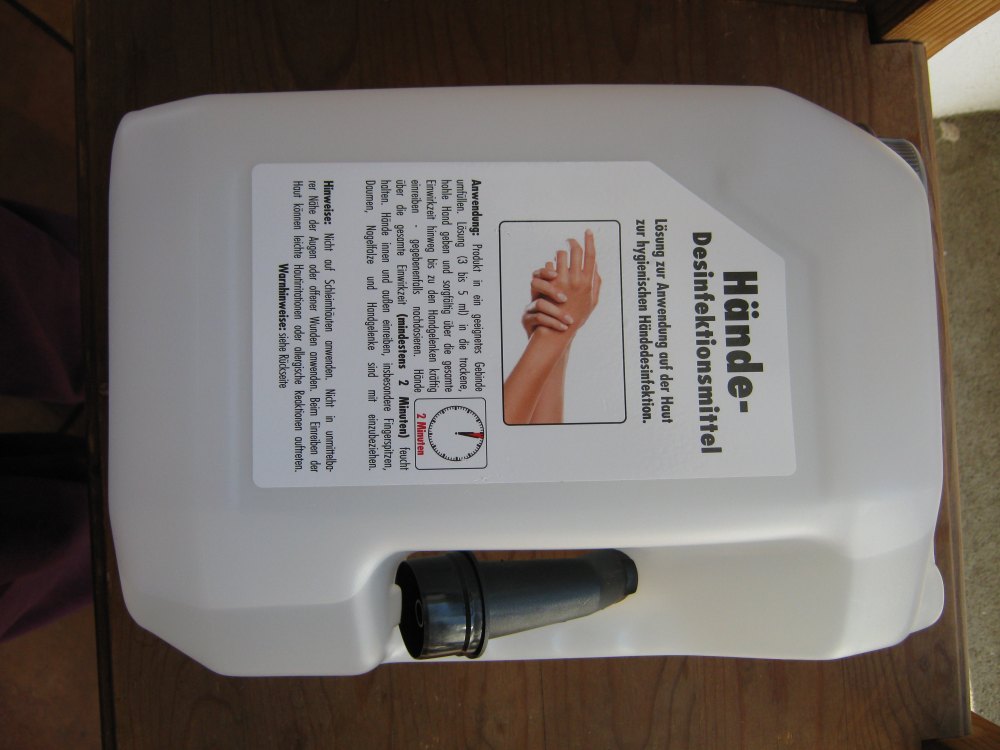 Ich war schon ganz gerührt, daß ich für meine Flächendesinfektion 1 Liter Handdesinfektionsmittel in der Apotheke bekommen habe, das hoffentlich nicht den Lack auf meiner Holztheke angreifen wird. War ein glücklicher Zufall, weil ich eigentlich nur reingegangen bin, um mich zu informieren, was ich machen/nutzen kann, da es kein Flächendesinfektionsmittel irgendwo zu kaufen gibt.