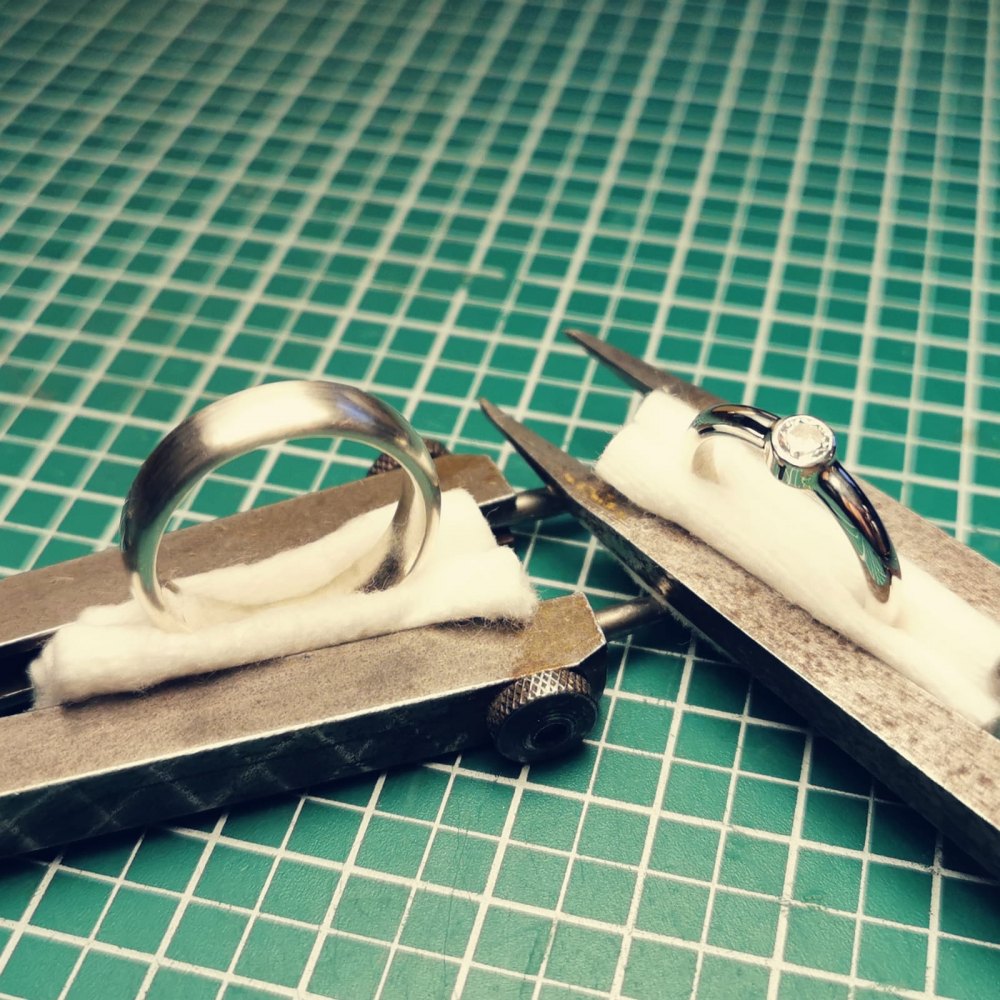 ich stelle mich am besten erstmal vor. Ich bin 22 und studiere gerade Geschichte und Sinologie. Da man ja in den Semesterferien während dem Lockdown wenig zu tun hatte habe ich mir anfang letzten Jahres mal die Aufgabe gestellt einen Ring mit Stein aus einer Messingmutter zu machen, nachdem mir ungefähr 1000 mal ein Video dazu angezeigt wurde...Naja das war dann meine Abendbeschäftigung für 2 Wochen. Die Ringe wurden auch ganz in Ordnung, allerdings wollte ich eigentlich unbedingt eine Krappenfassung haben, daher habe ich im September wieder angefangen und bin dann auch ziemlich schnell auf Silber umgestiegen. Ich habe nun ein paar Stücke hergestellt und letztens dann auch das erste mal ein paar Verlobungs oder Eheringe gemacht(das wusste Niemand so genau