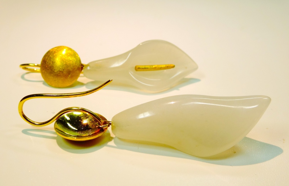 Ich hätte gerne ein Paar Ohrhänger aus Lapislazuli für meine Frau. Es sollen recht schlanke, glatte, ovale Pampeln sein, ca 30 mm lang, schön gemustert mit etwas Pyrit. Die Fassung sollte klein und schlicht sein.