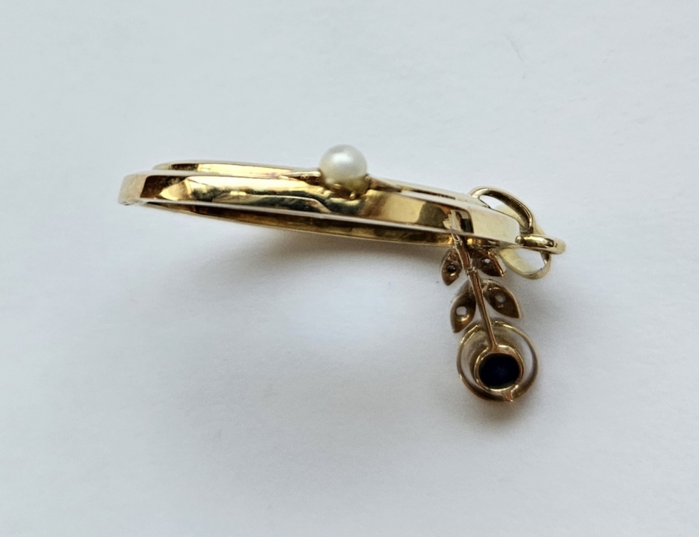 ... und dabei tatsächlich was gefunden: einen kleinen Anhänger aus 585 Gold mit Saphir (nehme ich jedenfalls mal an) und klitzekleinen Diamantrosen. Und zwei ziemlich abgenutzten Perlchen. Und dazu die Frage an euch: sehen die aus wie eingeklebt? Dann könnte man die ja austauschen.