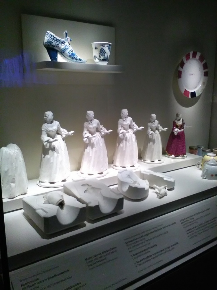 Man soll ja neugierig bleiben und auch mal über den eigenen (beruflichen) Tellerrand gucken. Das habe ich mit 2 Freundinnen im Oktober gemacht am Tag der Restaurierung in Form einer Teilnahme eines Workshops, der sich mit der Erstellung von Porzellanblüten aus Biscuitporzellan beschäftigt hat. Biscuitporzellan nennt sich das unglasierte gebrannte Porzellan. Die Materialbeschaffung (Trockenblumen) war ein ziemlicher Blindflug ohne das Abschätzen können, was einen erwartet. Aber trotzdem war der Tag interessant. Erst ein geführter Besuch in die Porzellanabteilung des Bayerischen Nationalmuseums und dann ab in die Werkstatt, um mit eigenen Händen mit Porzellan zu arbeiten. Es war toll, sich auszuprobieren im tauchen von flüssiger Porzellanmasse und modellieren von knetbarer Porzellanmasse. Erkenntnis meines Tages: es hat Spaß gemacht, die Pfoten dreckig zu machen, aber es wird wohl kein Hobby werden, das ich weiter ausbauen werde.