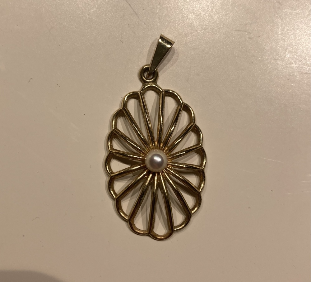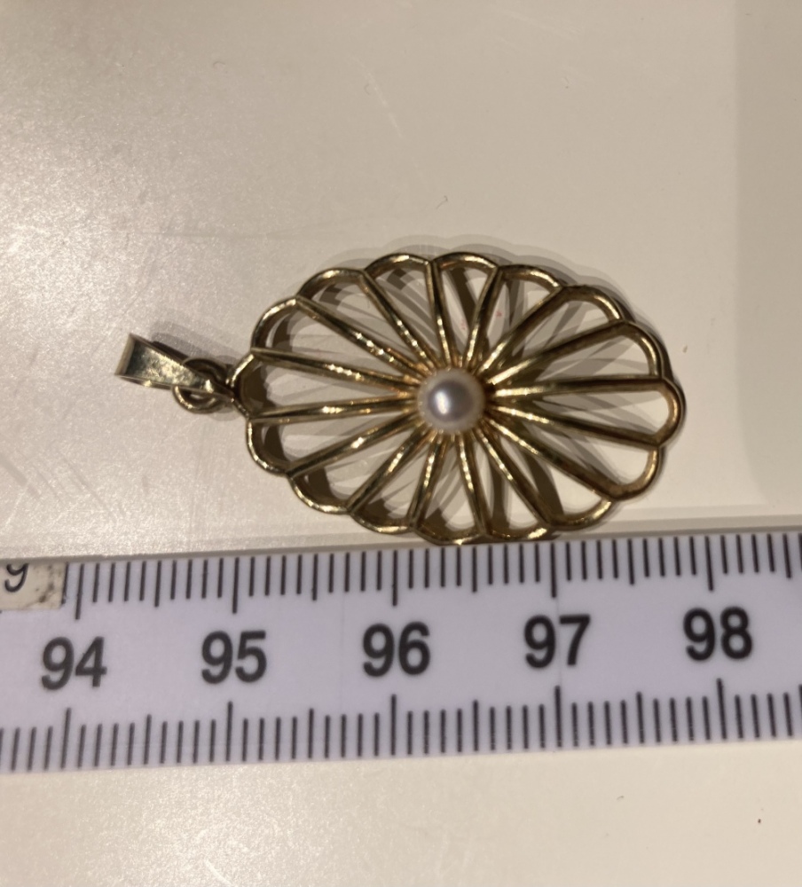 - weiterhin vermute ich aufgrund der sehr runden Form und gleichmäßigen Farbe eine unechte Perle. Die Perle scheint mir in sehr gutem Zustand, also vielleicht sogar noch jünger (oder wenig getragen). Also mir ist klar, dass es keinen besonderen finanziellen Wert hat. Aber mich würde Alter und Herkunft interessiert.