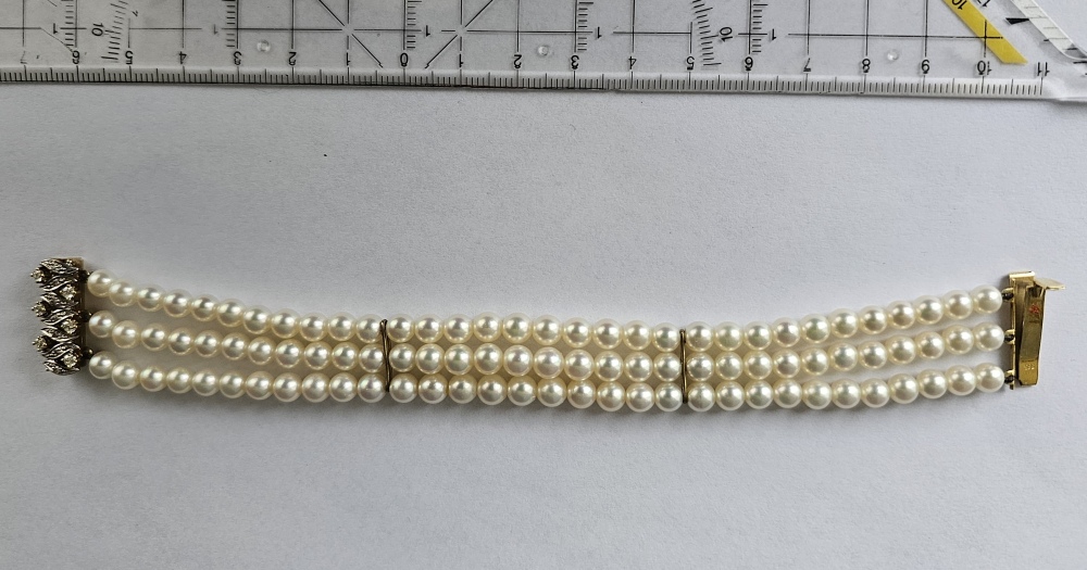 Das zweite Stück wäre dieses Perlenarmband, ich bin mir nicht absolut sicher, meine aber, mein Vater hätte es bei einem Juwelier auf Helgoland gekauft, über den Preis weiß ich nichts, Gewicht sind 21g.