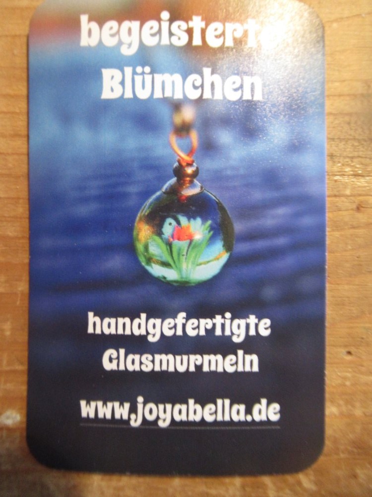 Von unserem letzten Urlaub in Prerow an der Ostsee - wo ich mittlerweile total Fan von bin - habe ich etwas kunsthandwerklichen Schmuck mitgebracht. Originell und mit dem Bezug zum Meer fand ich diese Segelschifförmigen Anhängern aus Kieseln, Scherben und Fundstücken. Die Glasmurmel - diese Frau macht fantastische Miniaturen in Glas und letztes Jahr haben wir schon mal eine mit (nachtleuchtenden) Pilzen mitgebracht - machte es einem wirklich schwer, sich zu entscheiden, es gibt verschiedene Themen, alle mit liebevoll gestalteten Kärtchen und auch die Beratung am Stand war sehr zugewandt.