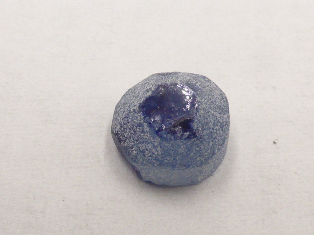 Ein Kunde brachte einige Saphirkristalle, zwar sehr dunkel, aber mit einem tollen Königsblau. Die Kanten der Kristalle waren abgerundet und wie mit einem glänzenden Zuckerguss überzogen. Beim Formschleifen gab es die erste Überraschung: der Stein wurde immer heller. Nach dem Aufkitten und Schleifen der Unterseite kam mir der Stein fast farblos vor. Das Polieren war keine Freude. Immer wieder tauchten neue Pits auf. Nach dem Umkitten und Facettieren der Oberseite wurde der Stein wieder dunkler und sah nach dem Polieren wie ein mittelblauer Saphir aus. Nach dem Abkitten und Reinigen des Steines war alles klar: Der Rohstein war mit einer dicken blauen Glasschicht ummantelt, die beim Schleifen natürlich weg ging. Etwas blaues Glas hatte sich in Risse gezogen und färbte den Stein. Außerdem enthält der Stein zahllose kleine Einschlüsse, die beim Polieren als Pits auftauchten und einen zur Verzweiflung bringen konnten.