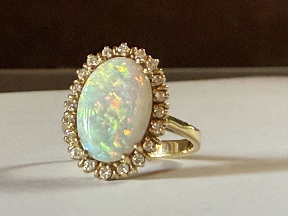 750 Gold / echter Opal / 20 Diamanten (Brillianten?)