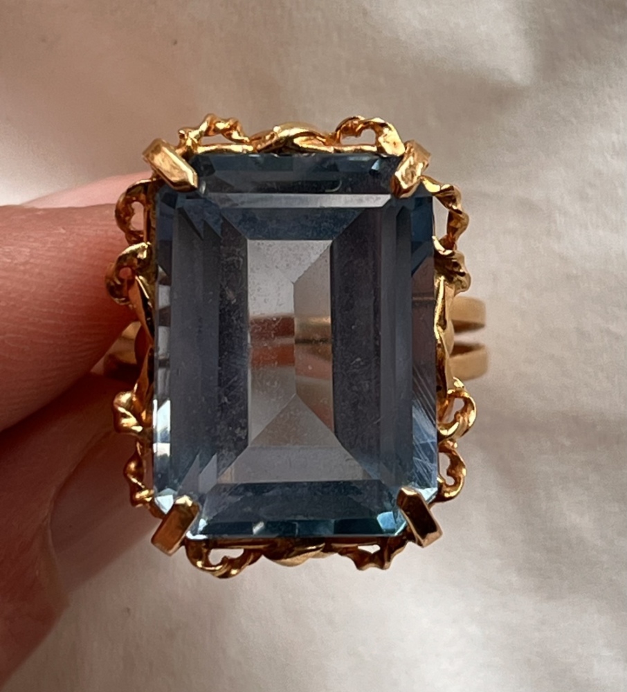 Eine Reinigung des Ringes, insbesondere des Steines wäre angebracht. Ganz wichtig: auch von unten etwas (mit etwas Spüli und mit einer alten Zahnbürste) reinigen und ordentlich mit Wasser ausspülen. Ultraschallbad wäre natürlich empfehlenswert, sowas hätte der Juwelier sicherlich in seiner Werkstatt.