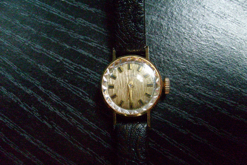 Es handelt sich um eine Uhr der Marke Zentra(o)?, Durchmesser 1,5 cm. Sie hat ein meschaniches Uhrwerk und ist funktionstüchtig. Stempel hinten auf Klappe ist 585 14 K.