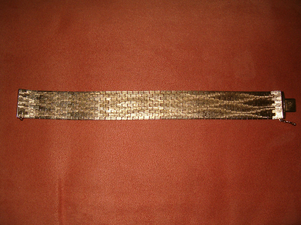 habe ein altes Armband von meiner Oma geerbt, dass damals sehr Teuer war und das ich gerne verkaufen würde.Es ist ein Einzelstück es wiegt 100g ist 20 cm lang 2,1 cm breit es ist ein Stempel mit den Angaben 750/18 Karat darin gedruckt.Es ist echt haben es mit einem Magneten getestet.