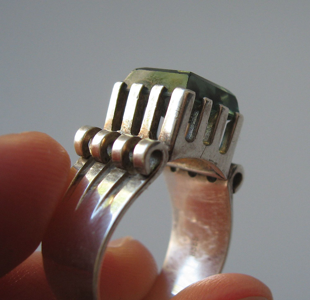 Den flaschengrünen Stein würde ich nicht unbedingt übernehmen wollen. Ich habe noch einen großen hellgrünen (Quarz?-)Stein, evtl. könnte der ja zurecht geschliffen werden. Stelle ich mir sehr schön vor zu Gold.